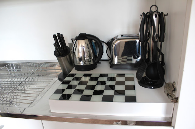 La chambre était très propre, avec un espace cuisine: lave-vaisselle, micro-onde, frigo, ustensiles de cuisine etc… au cas où! Mais en 3 jours nous avons préféré manger au restaurant plutôt que rester enfermés; vous comprenez :). L’accès au wifi est gratuit avec des mots de passe rigolos.
