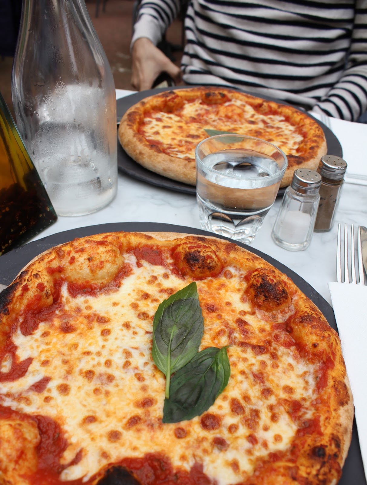 Il me tardait d’emmener mon chéri goûter les pizzas de chez « Rocco et sa mère » face à la cathédrale St-Roch. J’ai eu la chance de tester leur parmesan, mozzarella, olives et parts de pizza pesto et jambe de parme lors de l’évènement Obag au printemps dernier. Je m’étais régalé et j’avais hâte de tester leur pizza. Évidemment je n’ai pas du tout été déçue: j’ai retrouvé la pâte à pizza que j’avais tant aimé en Italie ! Absolument rien à voir avec les pâtes très épaisses ou autres que l’on l’habitude d’ingurgiter en France (désolé mais c’est vrai et j’ai rarement retrouver ce goût de pâte purement italienne). Nous avons pris tous les deux une Margarita, une classique histoire de tester l’adresse en douceur et nous n’avons pas été déçu. Également excellent rapport qualité prix et le cadre est très agréable: d’un côté les trompes l’œil et de l’autre la cathédrale St-Roch. Je vous recommande l’adresse on a passé un très bon moment.