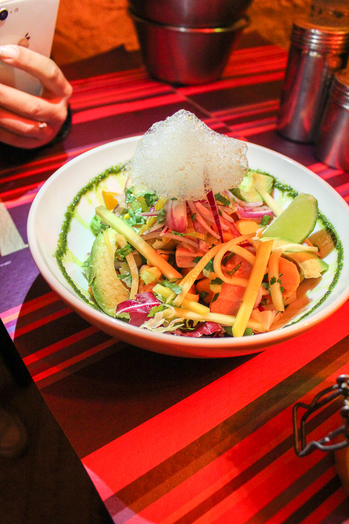 Lundi dernier j’étais invité chez El Circo pour participer à la préparation d’un ceviche et goûter les différents plats de la carte. Encore une fois l’enseigne met l’accent sur la qualité des produits et surtout sur notre odorat. Les plats sentaient très bon ! Il faut dire que la préparation d’un ceviche a l’air simplissime quand on regarde le plat terminé « ouais c’est juste des légumes coupés ». Détrompez-vous il y a un long travail d’assaisonnement et c’est là-dessus que repose la particularité de ce plat. Les cocktails de chez El Circo sont à tomber à la renverse: j’ai choisi un fraise gingembre appelé Pisco Fresa mais sans alcool (je devais rentrer réviser après). Je n’ai pas pu rester longtemps mais mes copines ont dégusté au dessert un quinoa au lait qui avait l’air très bon.