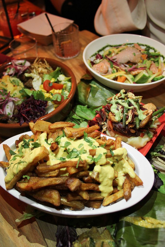 – les frites à la huancaina (une sauce crémeuse et légèrement épicée typiquement péruvienne à base de pommes de terres, de fromage et d’ail)