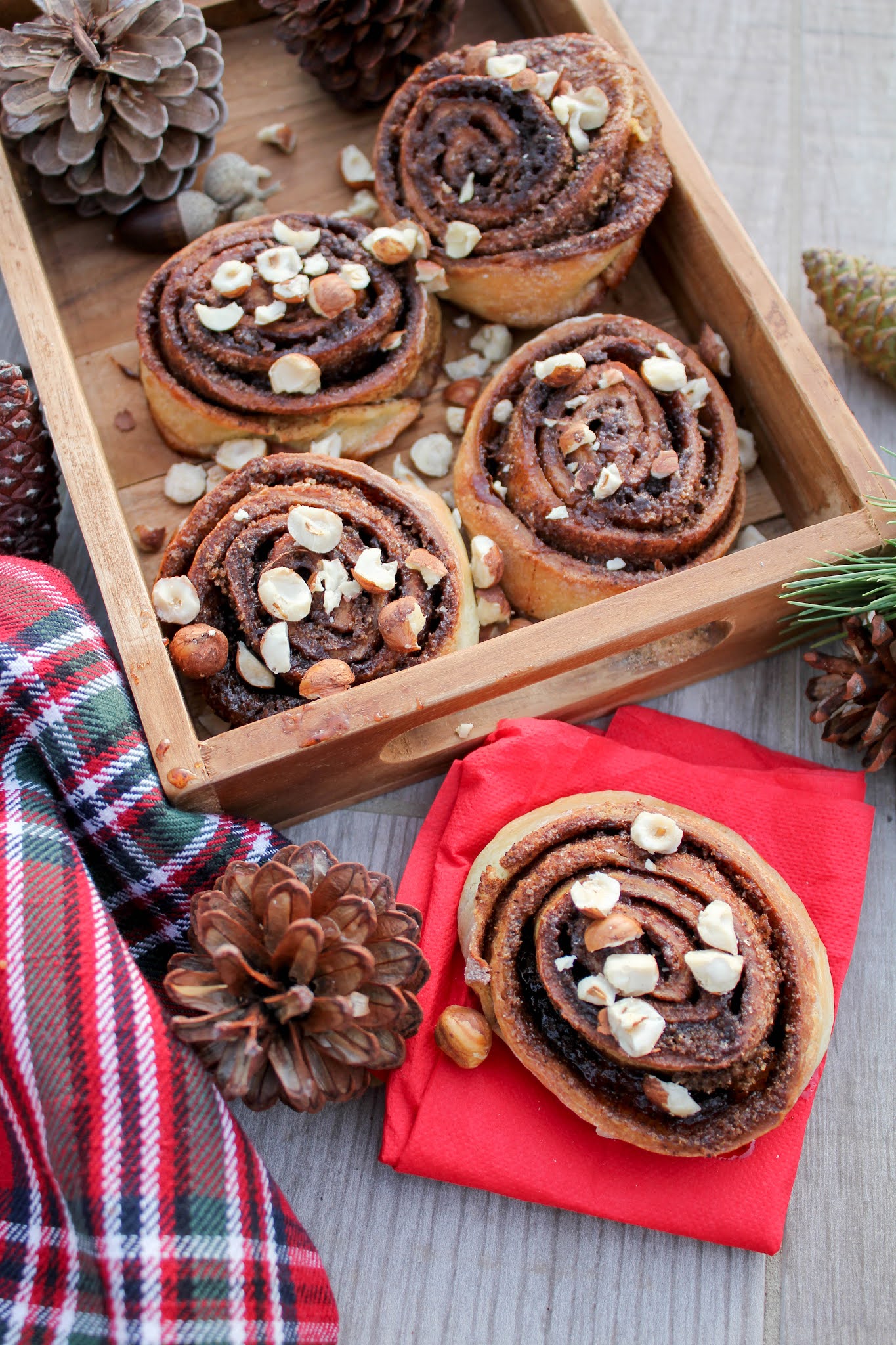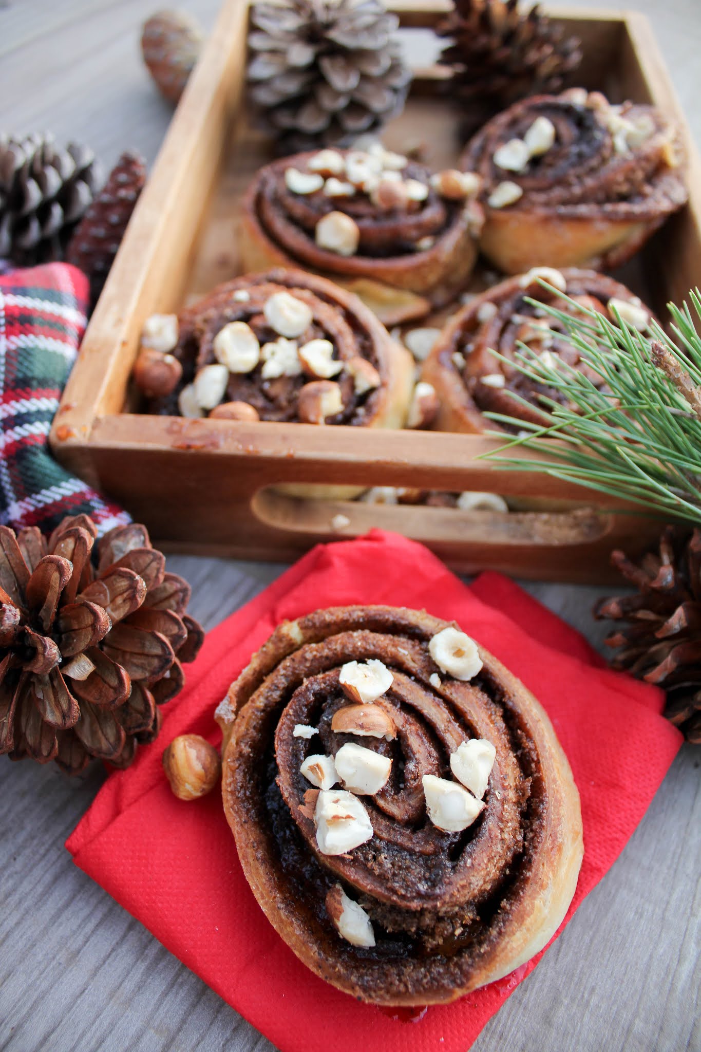 Le cinnamon roll est le gâteau de l’automne par excellence principalement, je pense, à cause de l’odeur d’épices qui s’en dégage. Personnellement, je les aime bien chauds quand ils viennent de sortir du four avec des petites noisettes concassées sur le dessus.